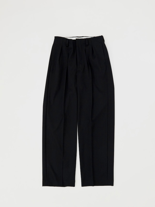 ------------------------- 幾度も叩き揉み洗いをすることで、コシがありながら柔らかさとしなやかさを両立させたコットンウェザーを使い、ツータックトラウザーを仕立てました。 ワイドシルエット、ツータック、六角ベルトループ、フラップバックポケット。 ------------------------- COTTON 100% ------------------------- SIZE 2 ウエスト 76cm ワタリ 36cm 股下 80cm 股上 34cm 裾巾 27cm SIZE 3 ウエスト 80cm ワタリ 37cm 股下 82cm 股上 35cm 裾巾 28cm SIZE 4 ウエスト 84cm ワタリ 38cm 股下 84cm 股上 35.5cm 裾巾 29cm ------------------------- ※サイズ表記について、各商品ごとに誤差が生じる場合があります。あくまでも目安としてご参照ください。 ※原則として返品、交換は受け付けておりません。商品に不備があった場合のみ、交換対応をとらせていただきます。予めご了承ください。