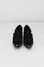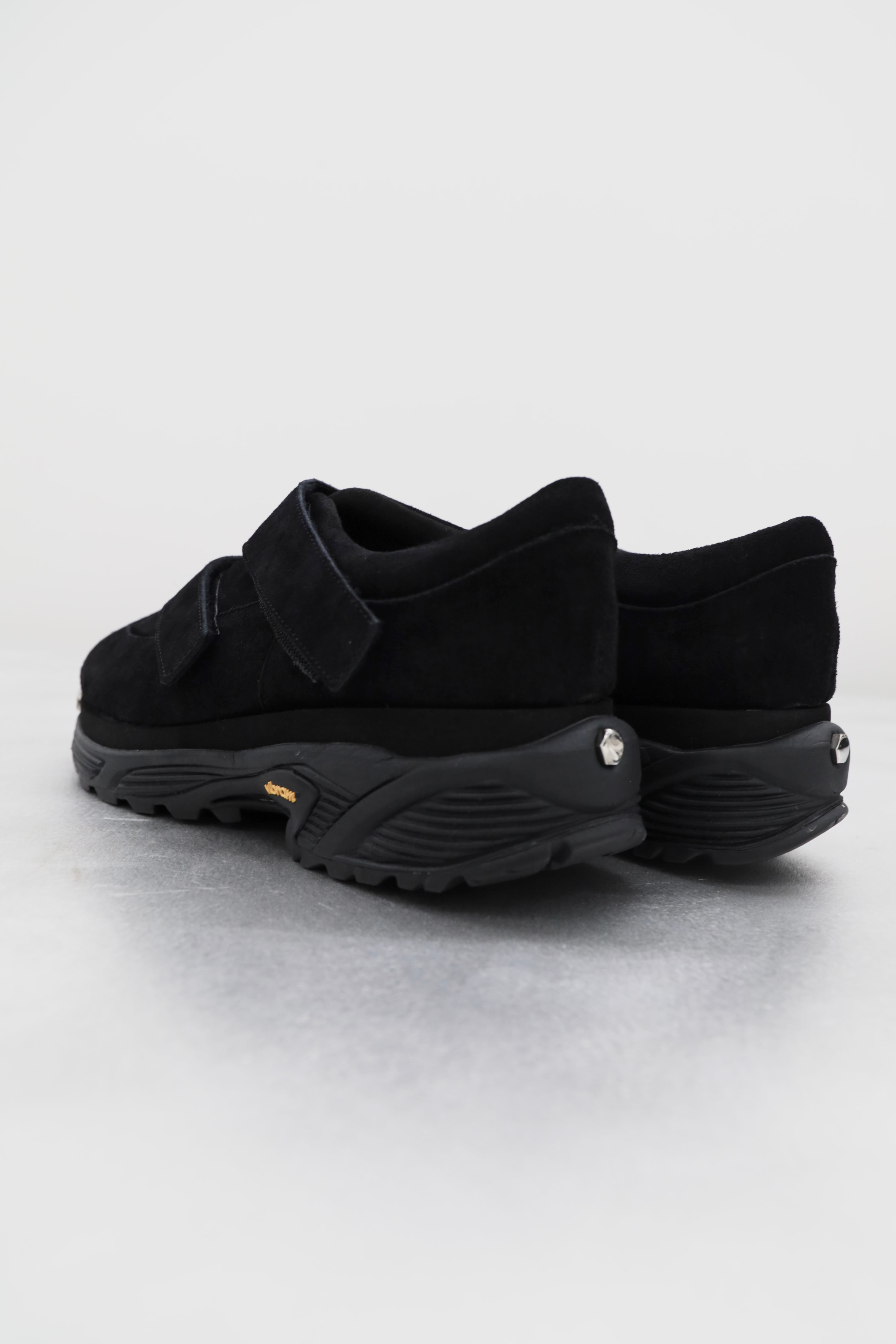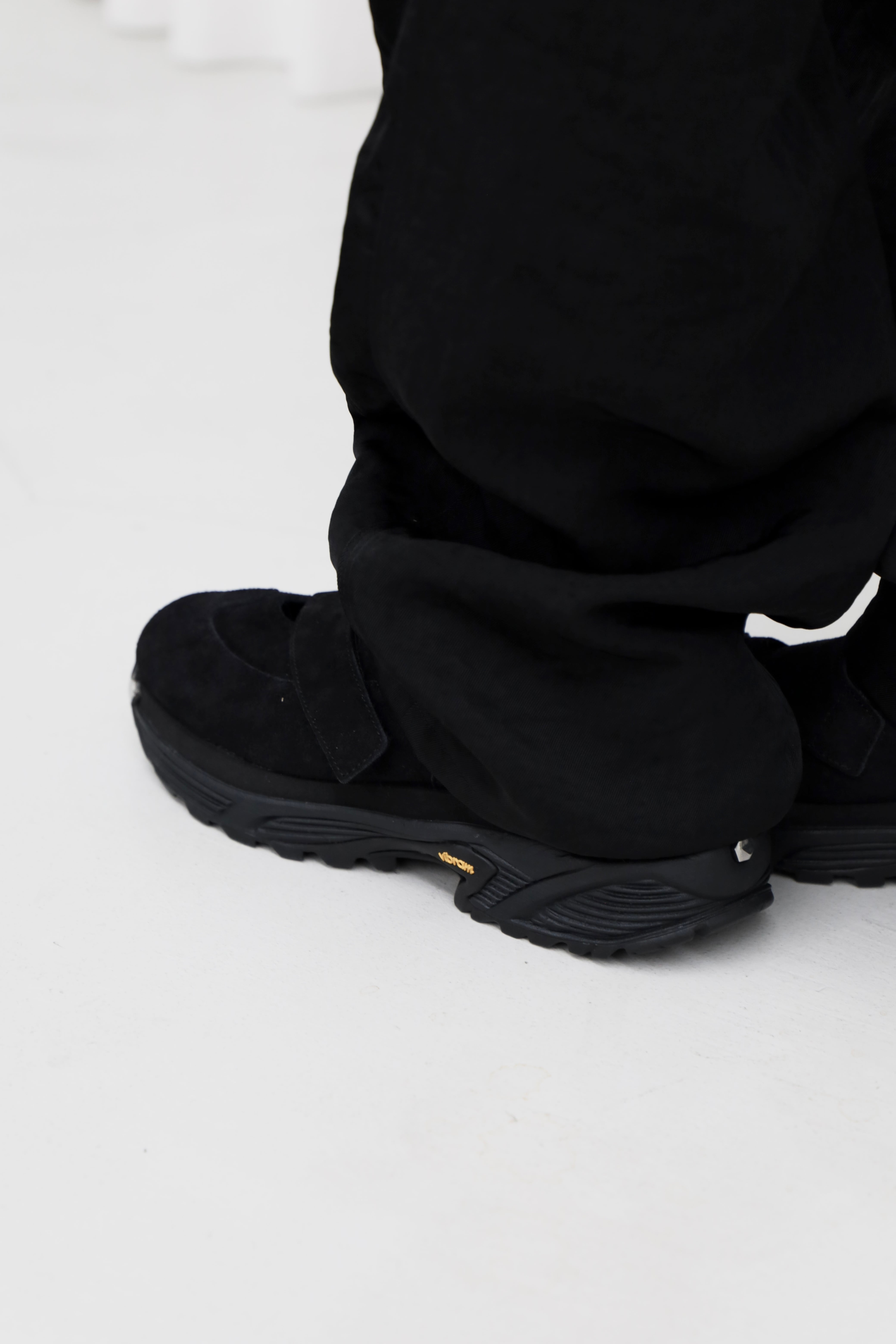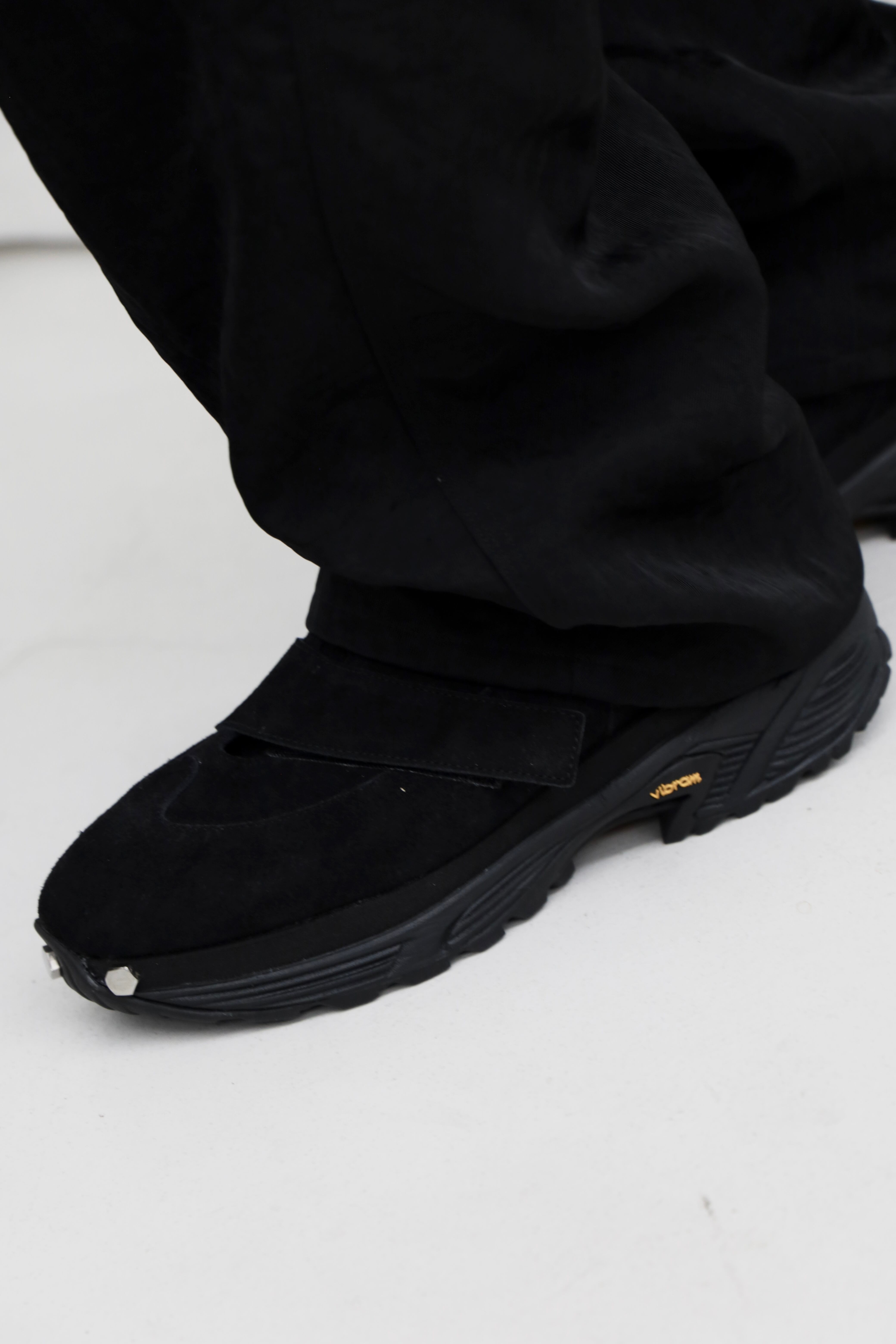丁寧に研磨した六角ボルトを打ち込んだビブラムソールのトレーナー。