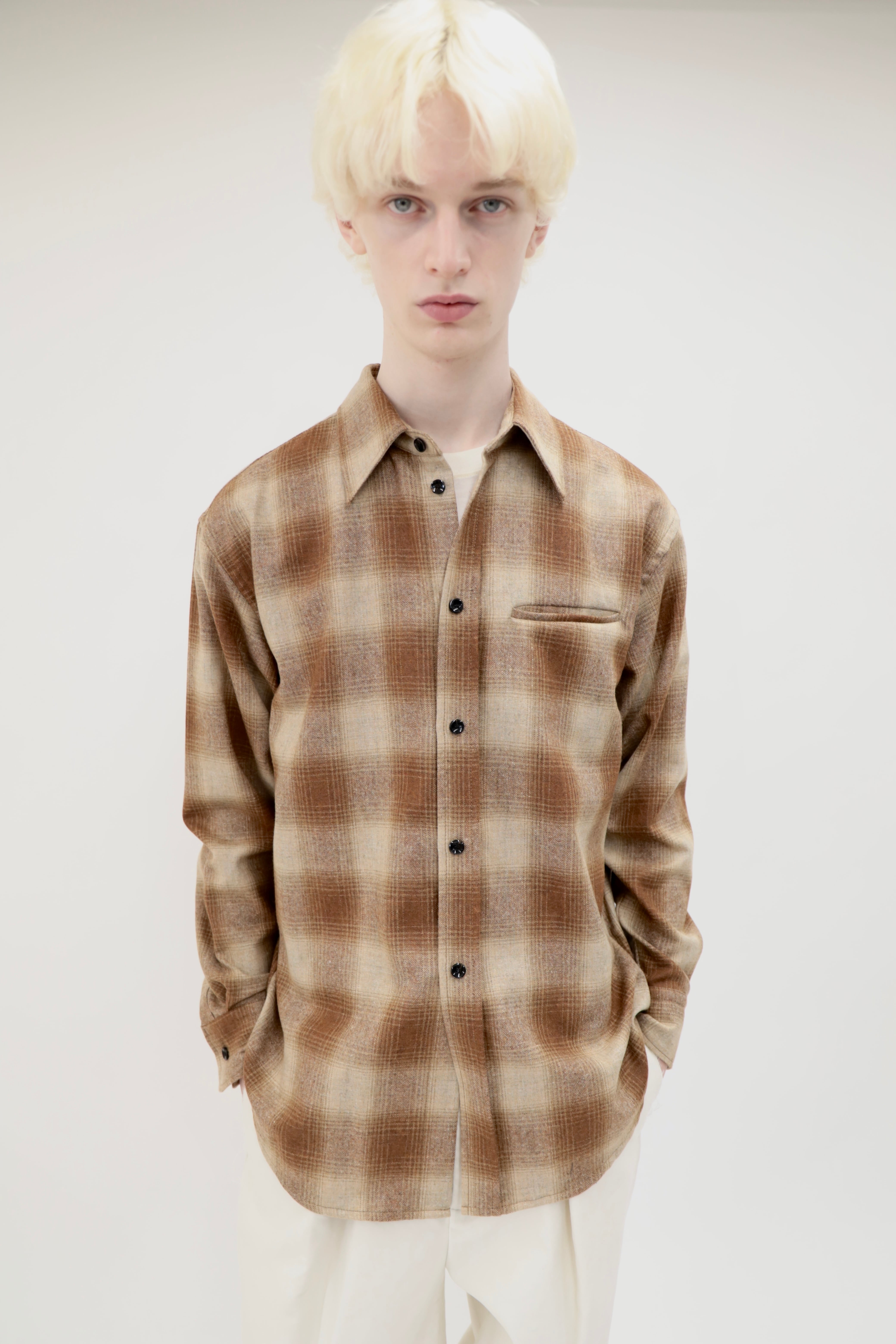 色目の美しいオンブレチェック柄のミックスウールで、ニュートラルなシャツを仕立てました。
