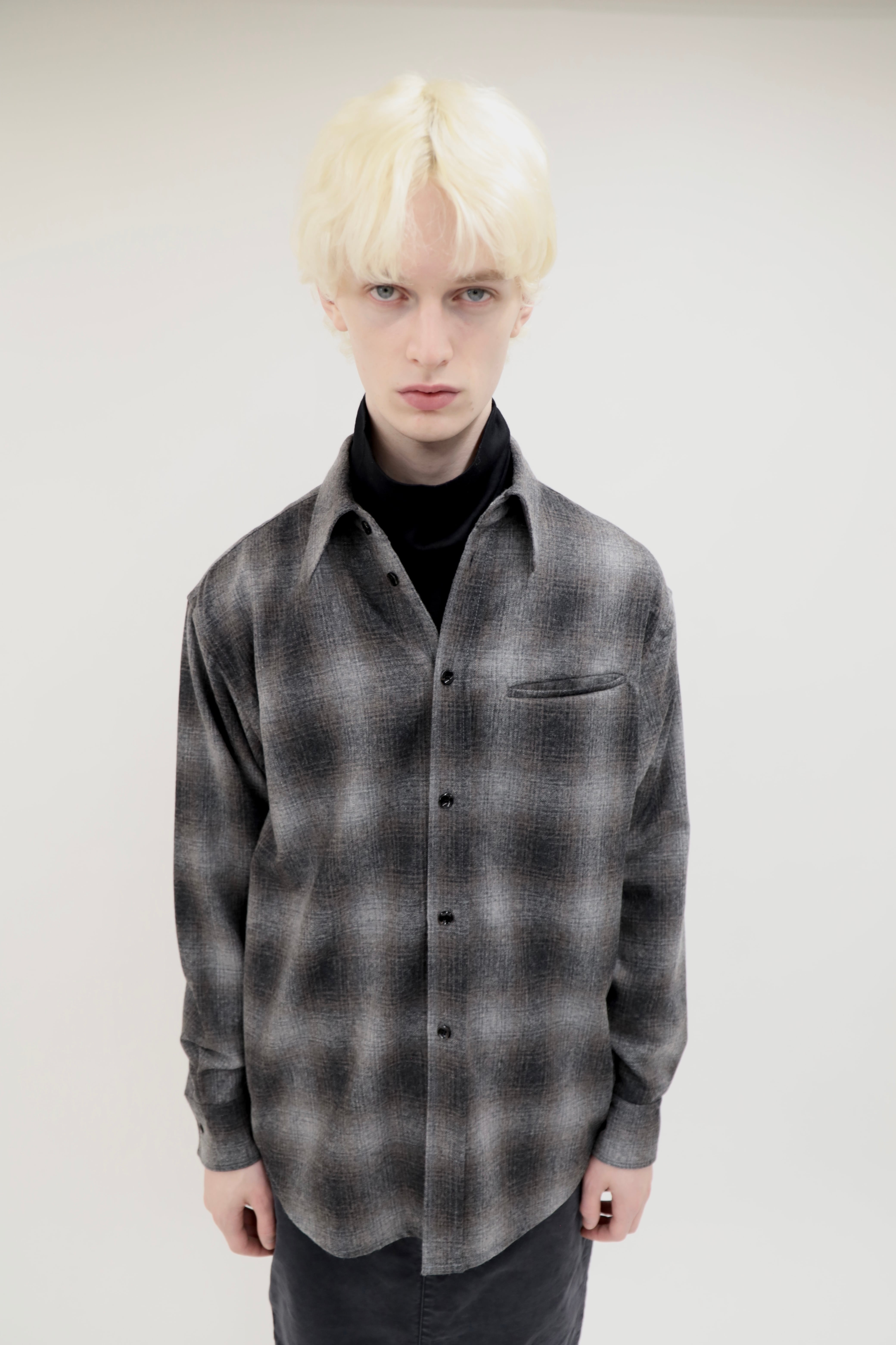 色目の美しいオンブレチェック柄のミックスウールで、ニュートラルなシャツを仕立てました。
