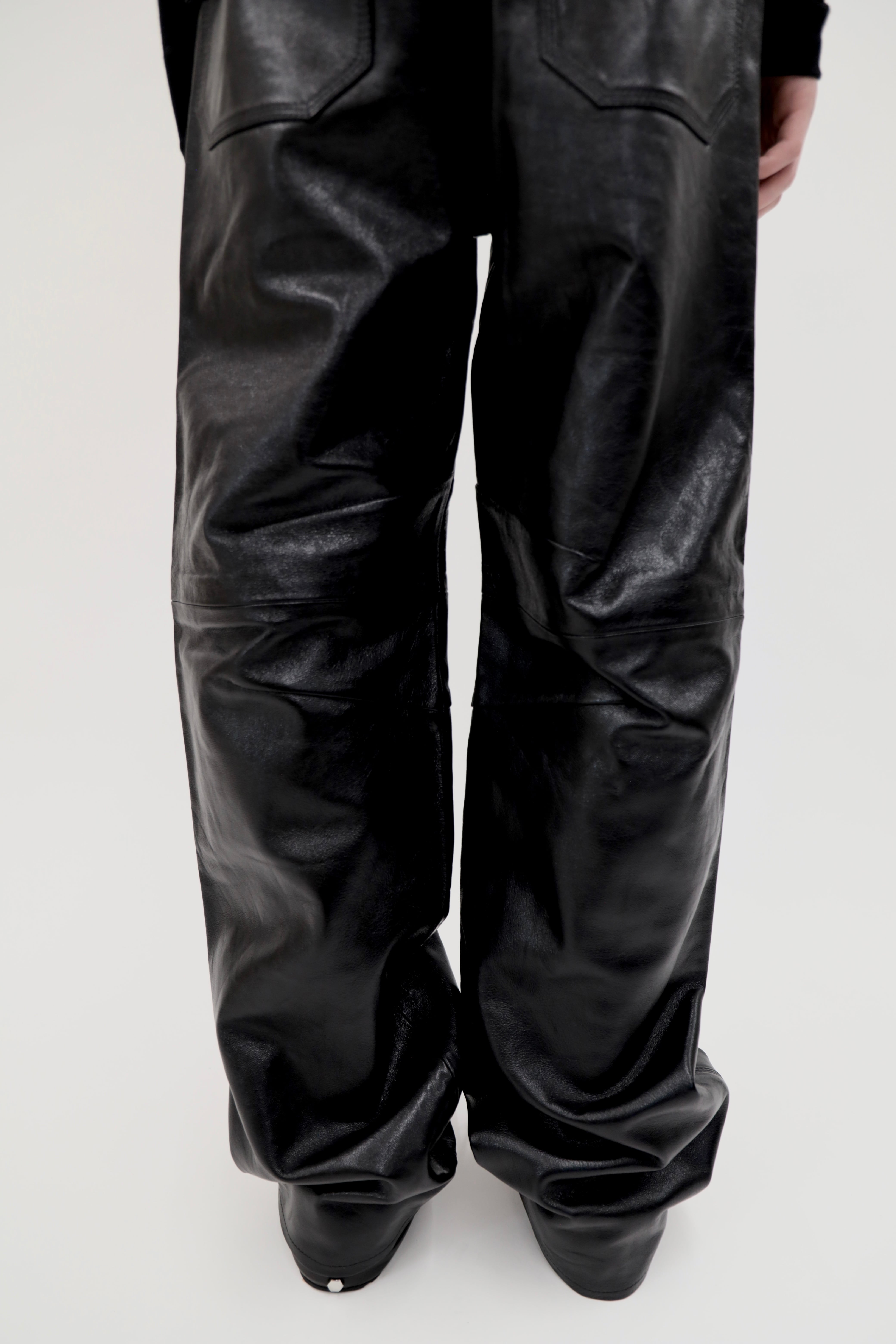 -012- BLACK LAMBSKIN OFFICE TROUSERS