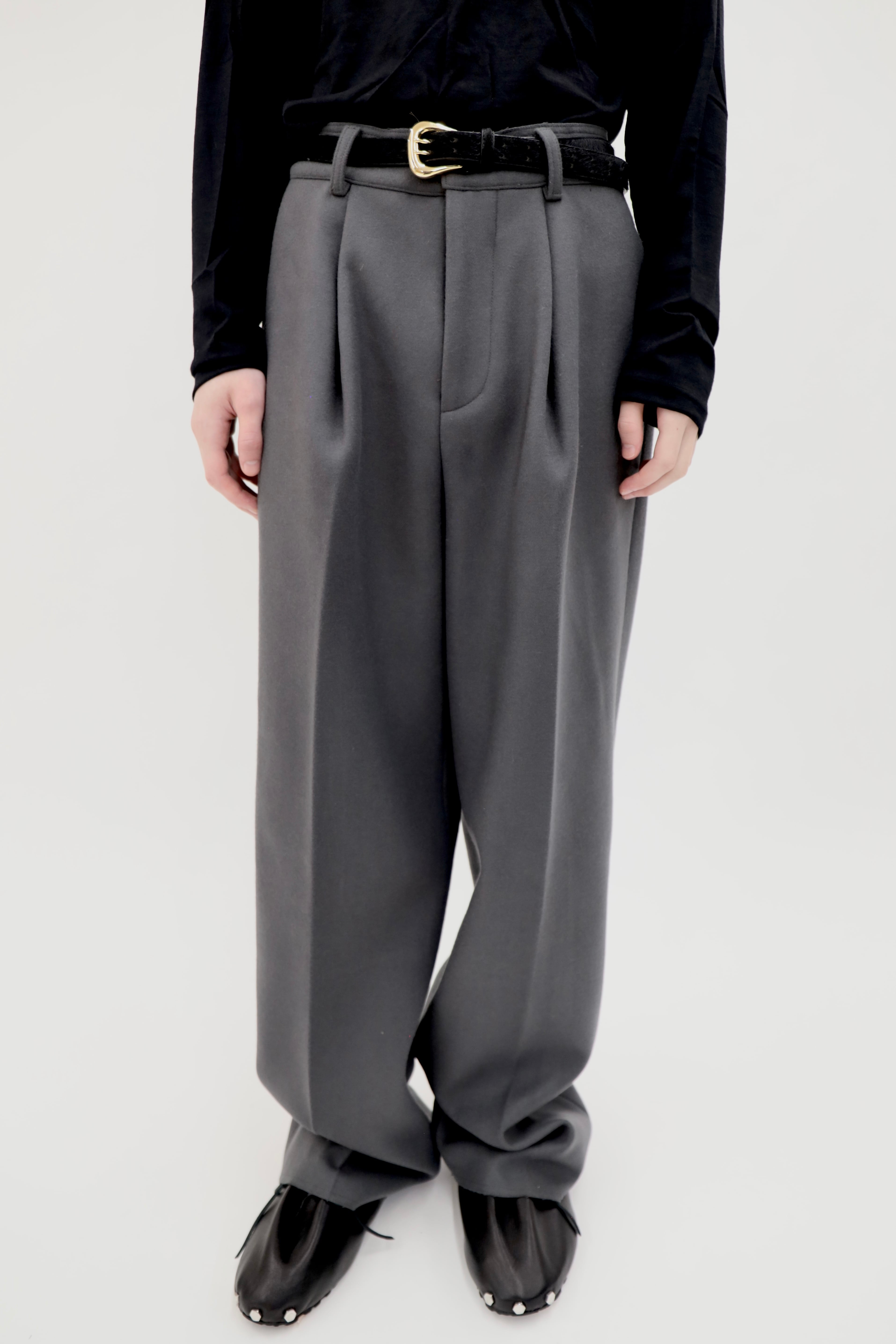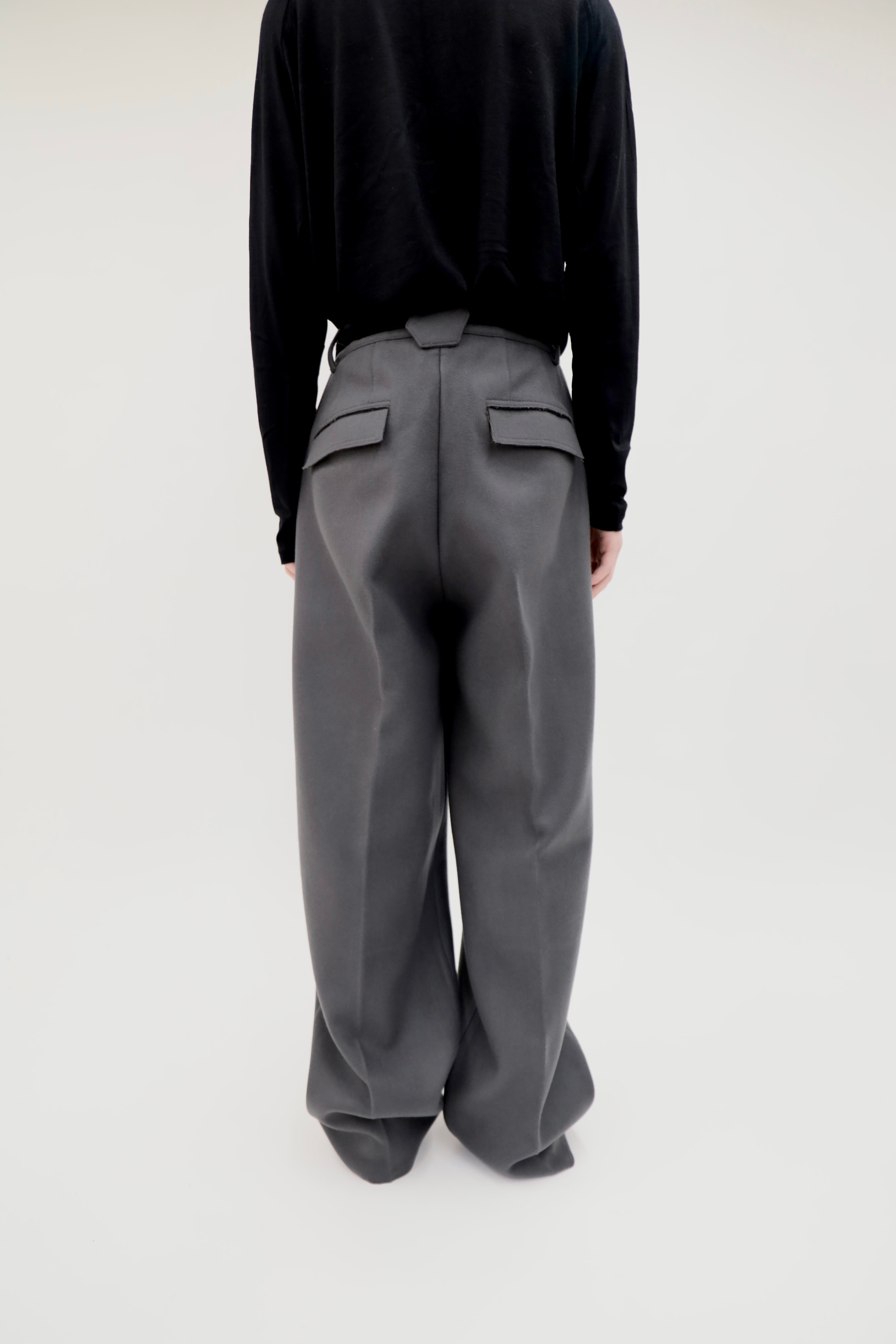 -012- SUPER MELTON CONCRETE META TROUSERS