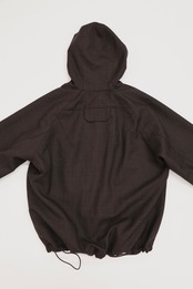 イタリア製のヴィンテージファブリックを使い、フーデッドジャケットを仕立てました。柔らかな秋らしいブラウンチェック。コンパクトフィット、たくさんのストリングス、左袖口と背面のメタポケット、ハイネック仕様、ギャザーライニング。