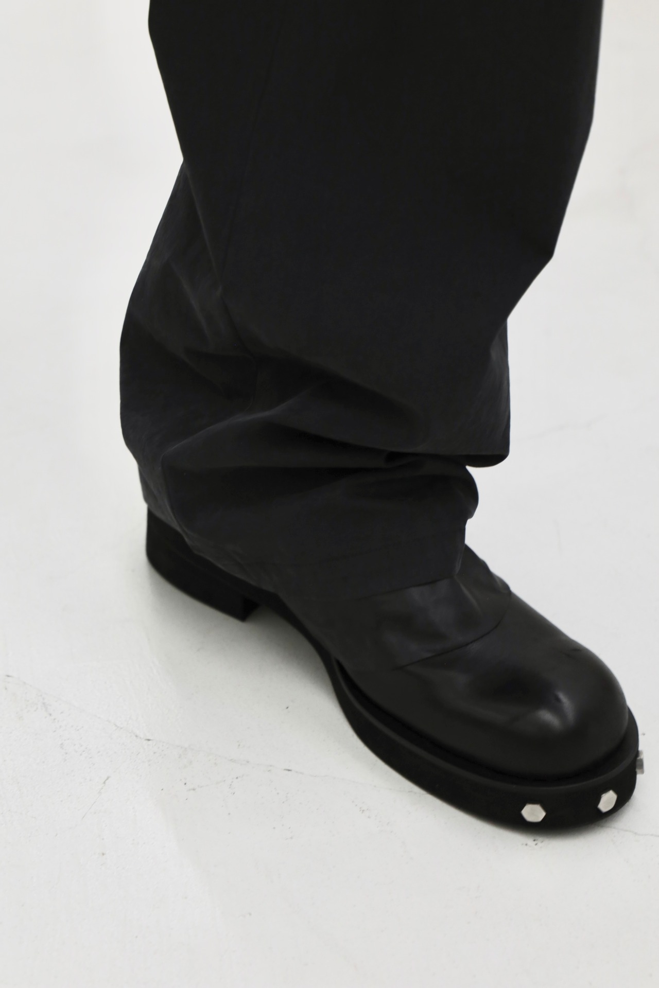 丁寧に研磨した六角ボルトを打ち込んだビブラムソールのカバーブーツ。