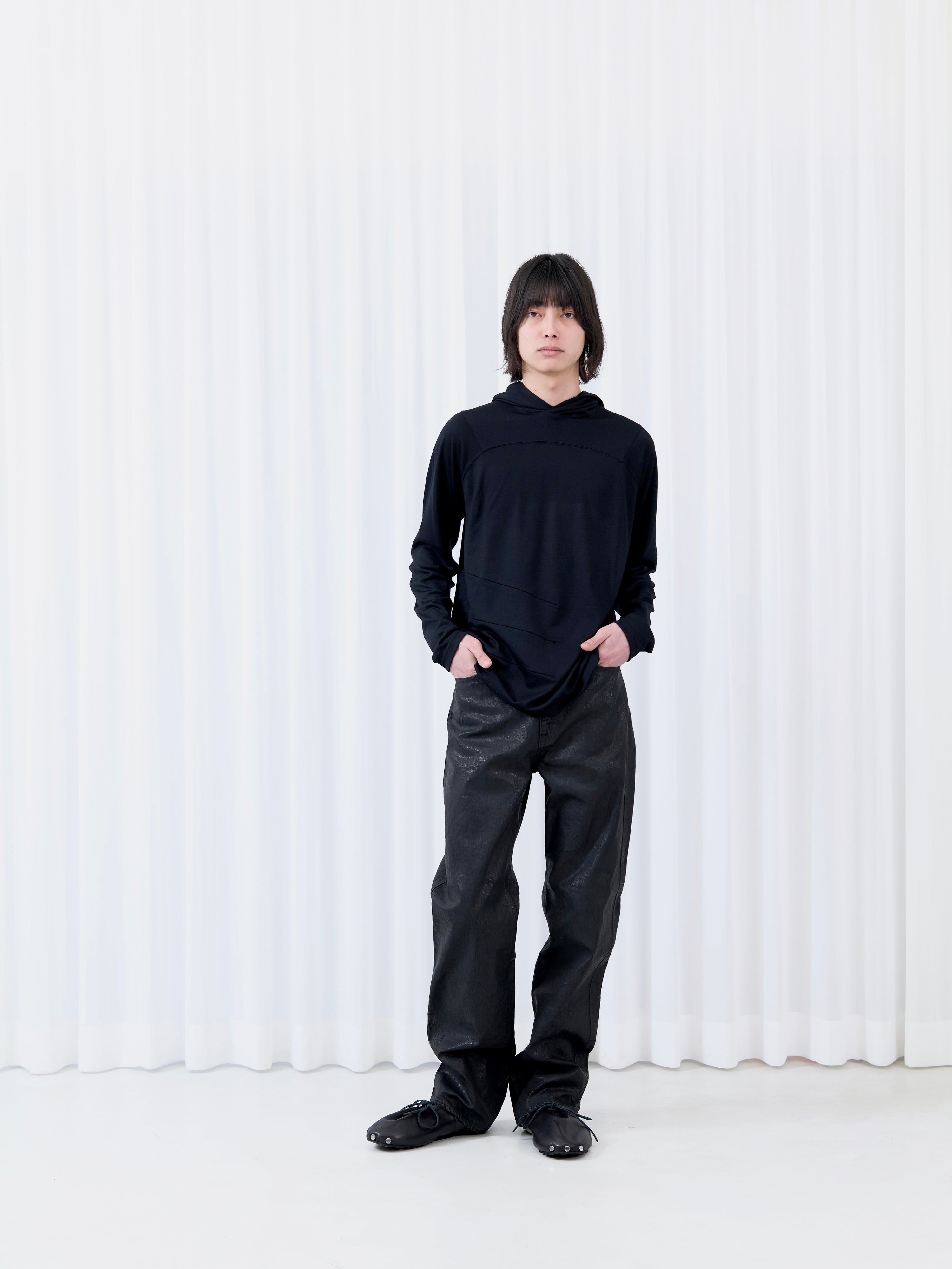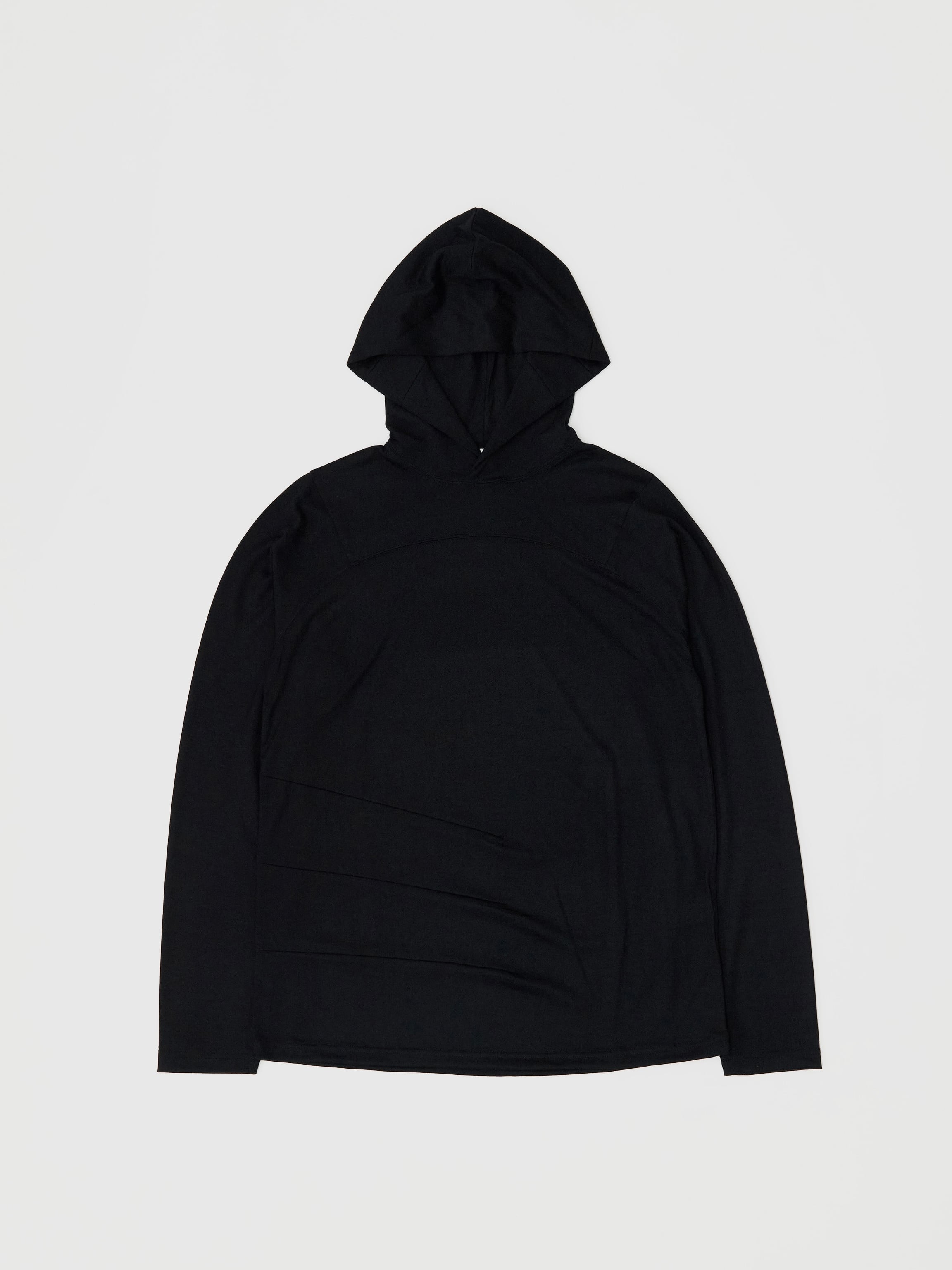 SUPER120'sのニュージーランド産メリノウールを、アノニマスなフットボールフーディに仕立てました。嵩高性がありながらも毛羽立ちが極めて少なく、非常にソフトなタッチ感が特徴です。