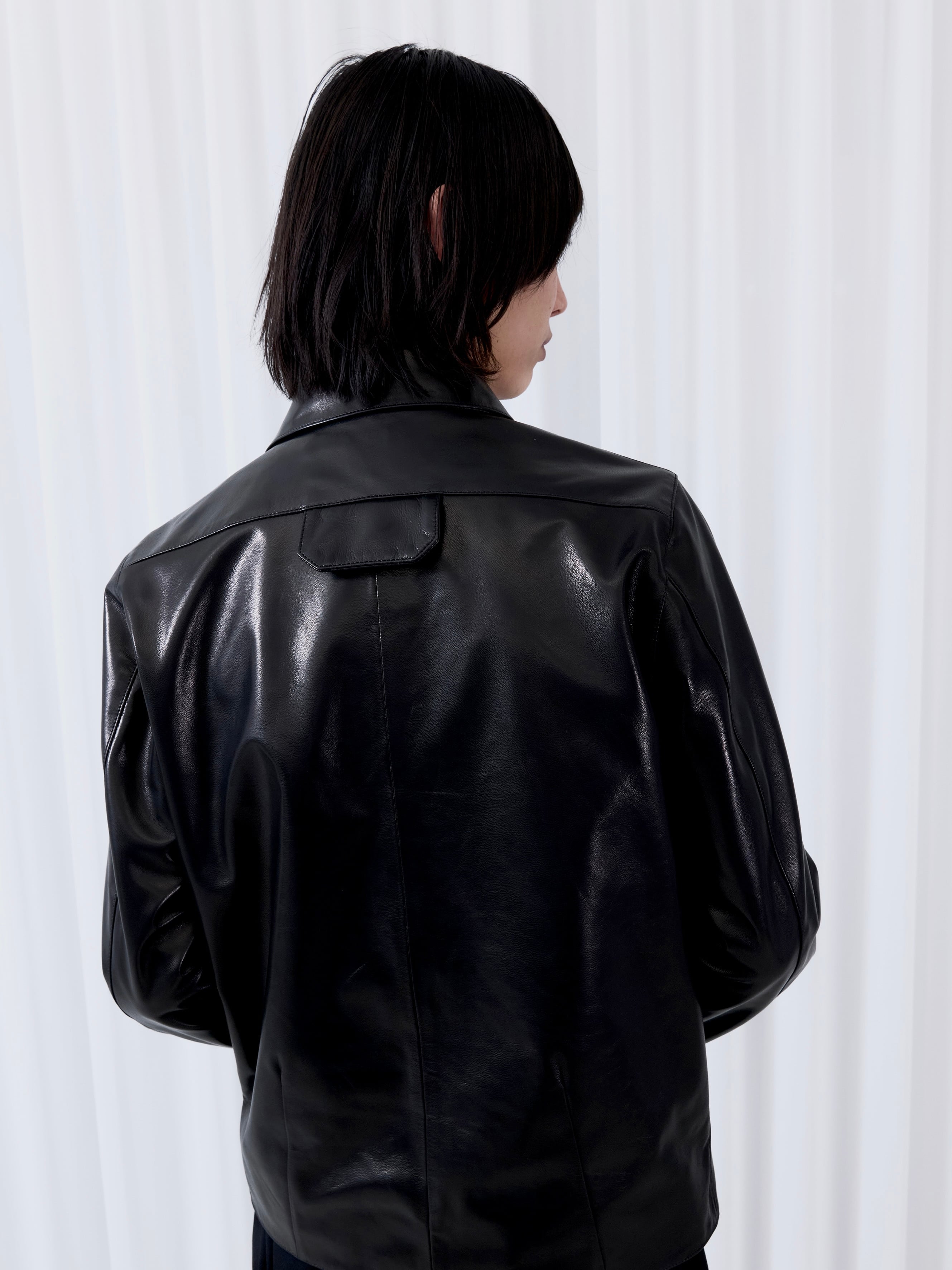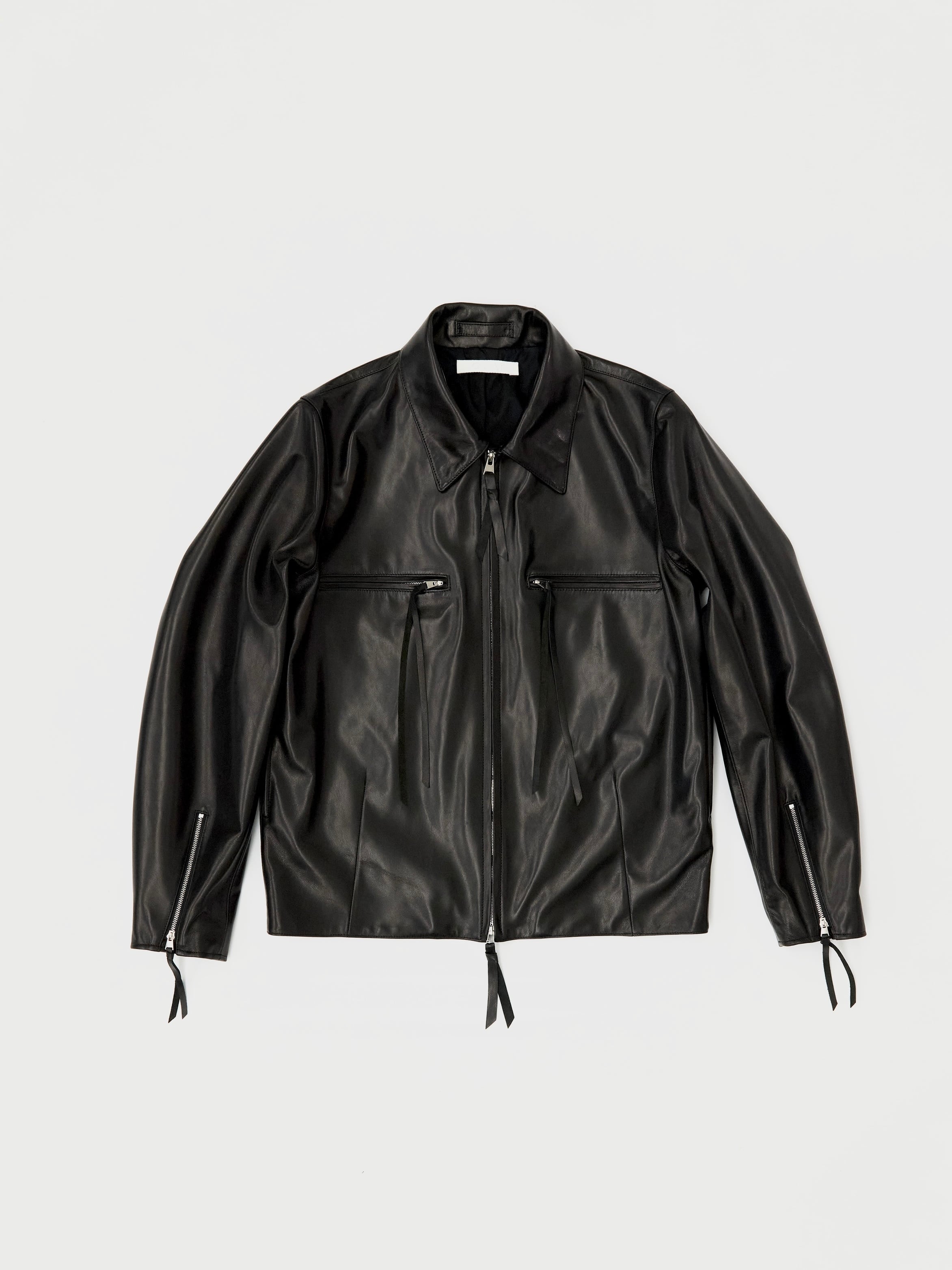 革本来の伸び率の高さを生かしたストレッチ加工とシルキーなテクスチャが特徴的な上質なキッドスキンを使い、サイクリングジャケットを仕立てました。