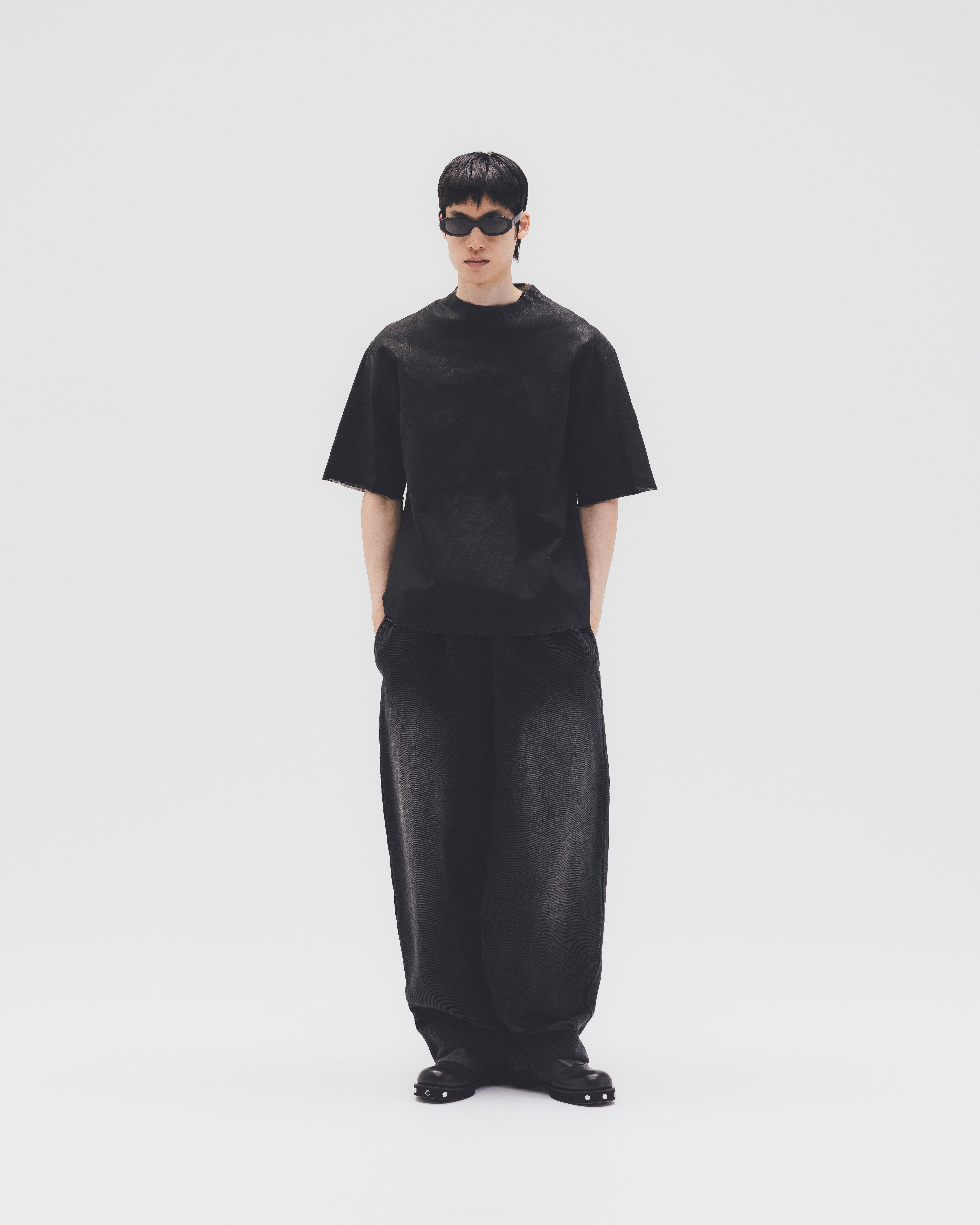 カットソー素材、ワイドシルエット。
