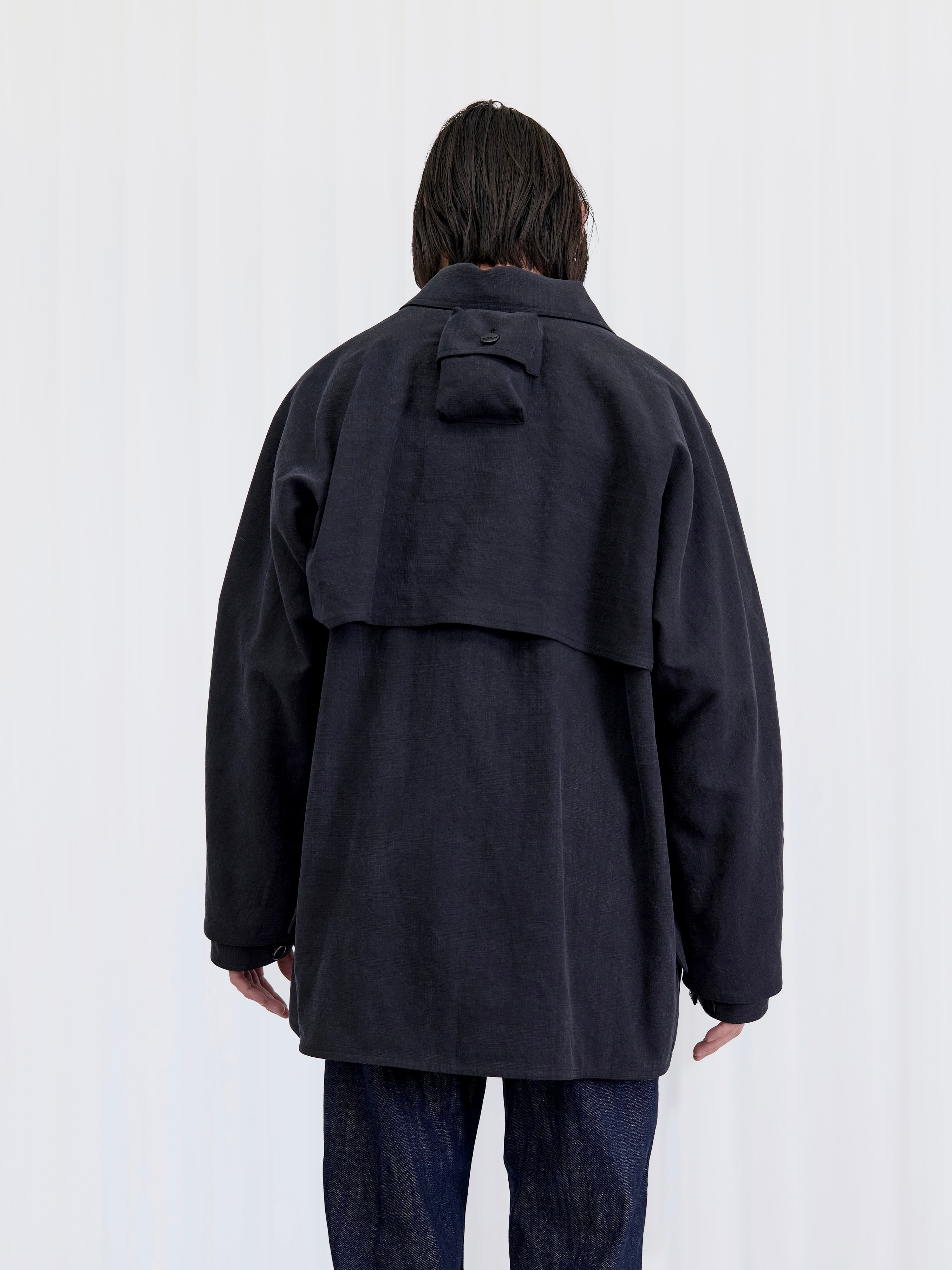 幾度も叩き揉み洗いをすることで、コシがありながら柔らかさとしなやかさを両立させたリヨセルスラブキャンバスを使い、ハンティングジャケットを仕立てました。