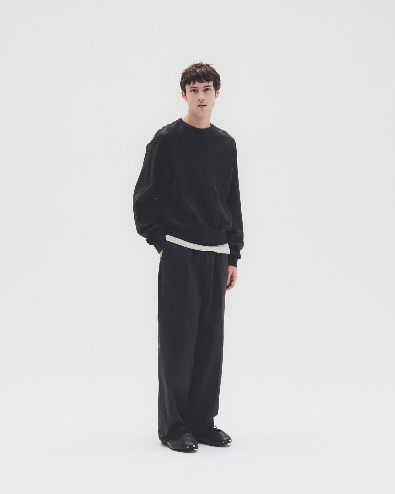 幾度も叩き揉み洗いをすることで、コシがありながら柔らかさとしなやかさを両立させたコットンウェザーを使い、ニュートラルなストレートトラウザーを仕立てました。