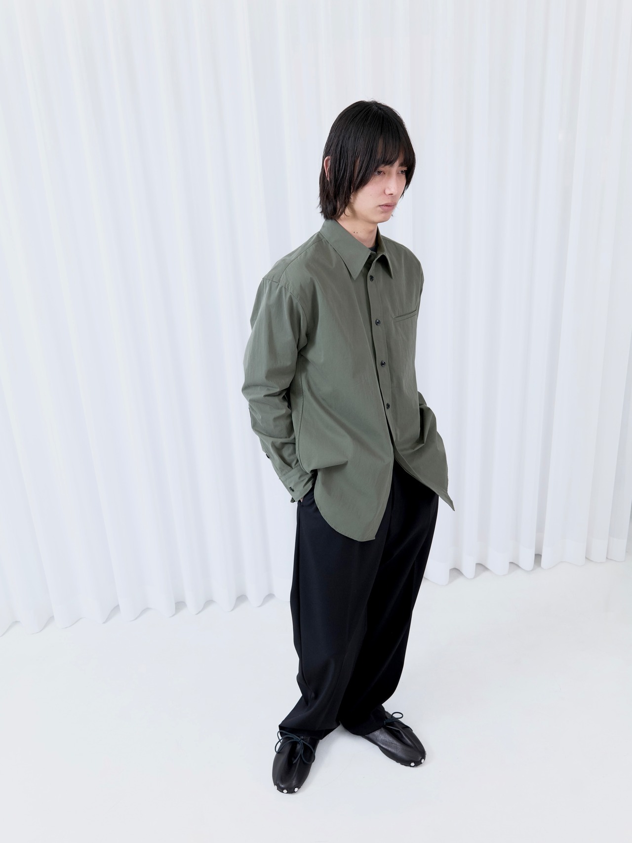 幾度も叩き揉み洗いをすることで、コシがありながら柔らかさとしなやかさを両立させたコットンウェザーを使い、ニュートラルなシャツを仕立てました。