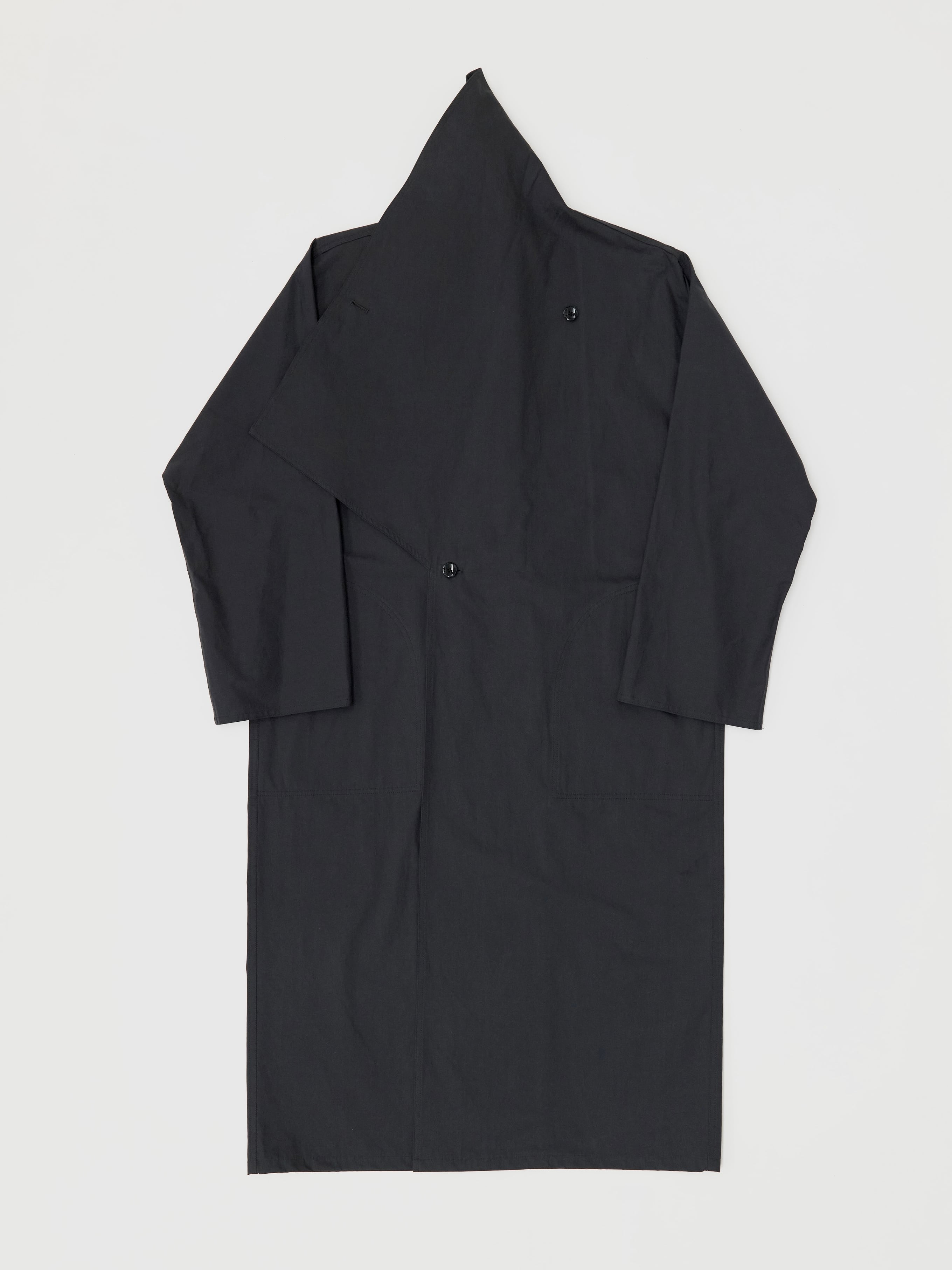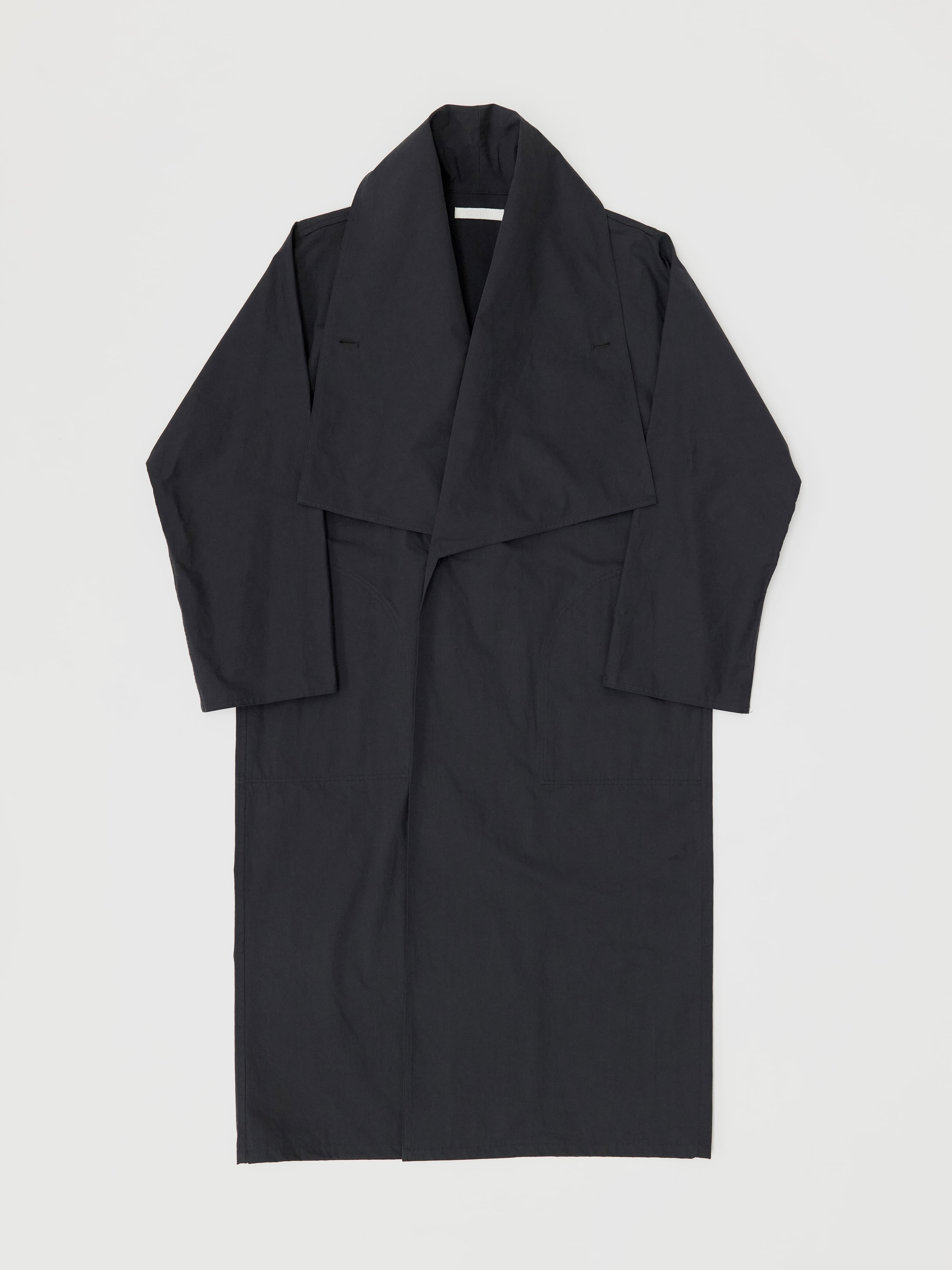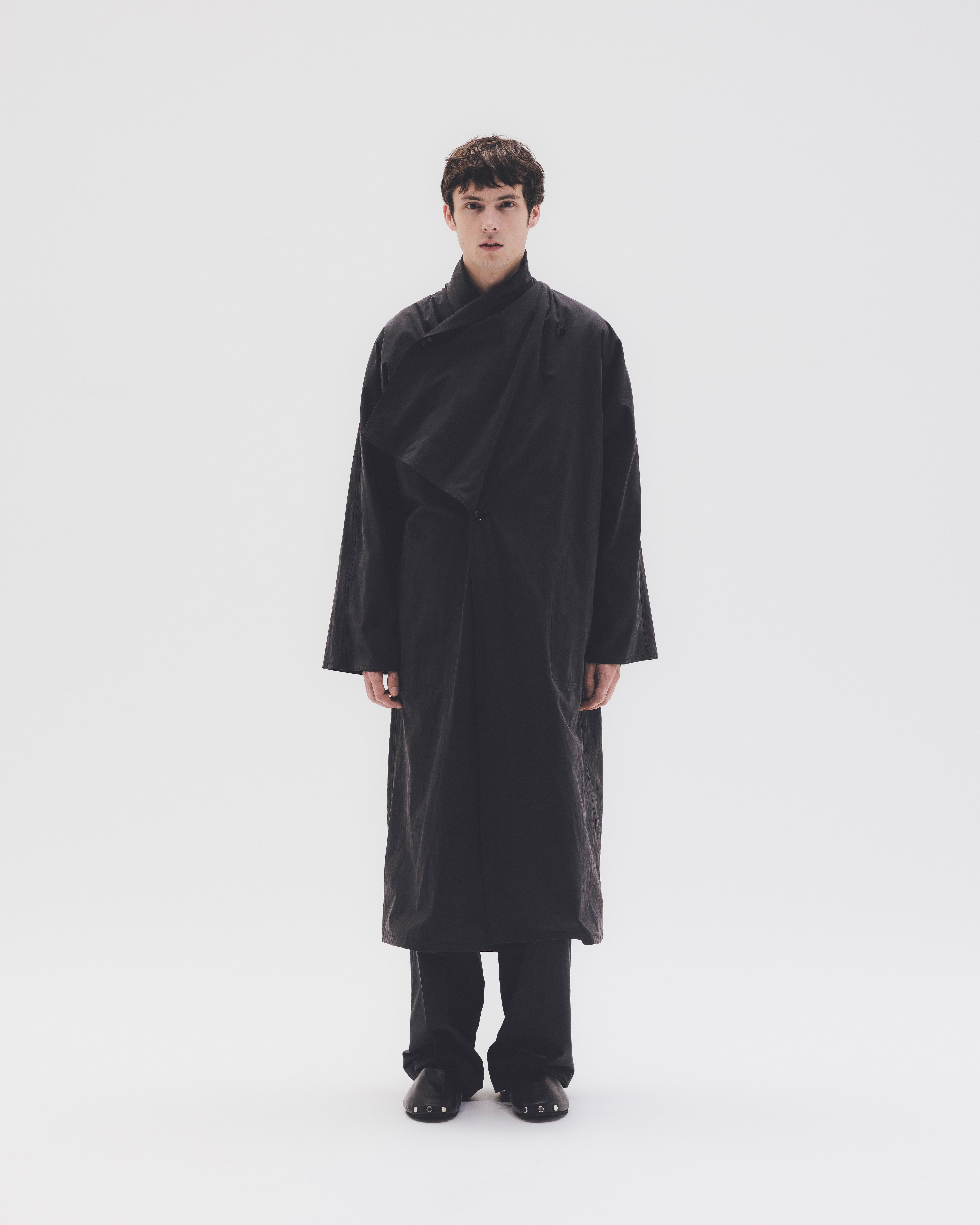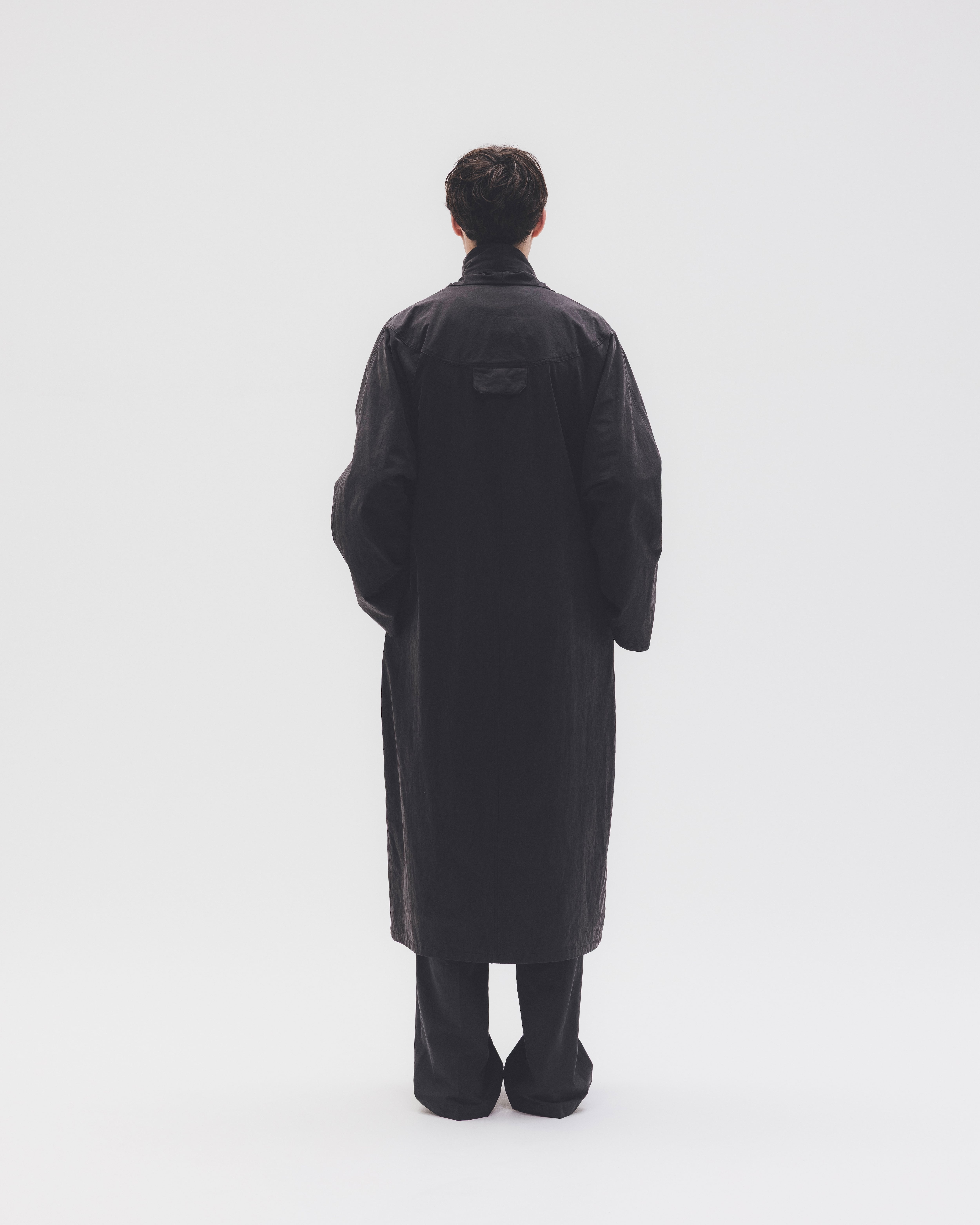 幾度も叩き揉み洗いをすることで、コシがありながら柔らかさとしなやかさを両立させたコットンウェザーを使い、アノニマスなオーバーコートを仕立てました。