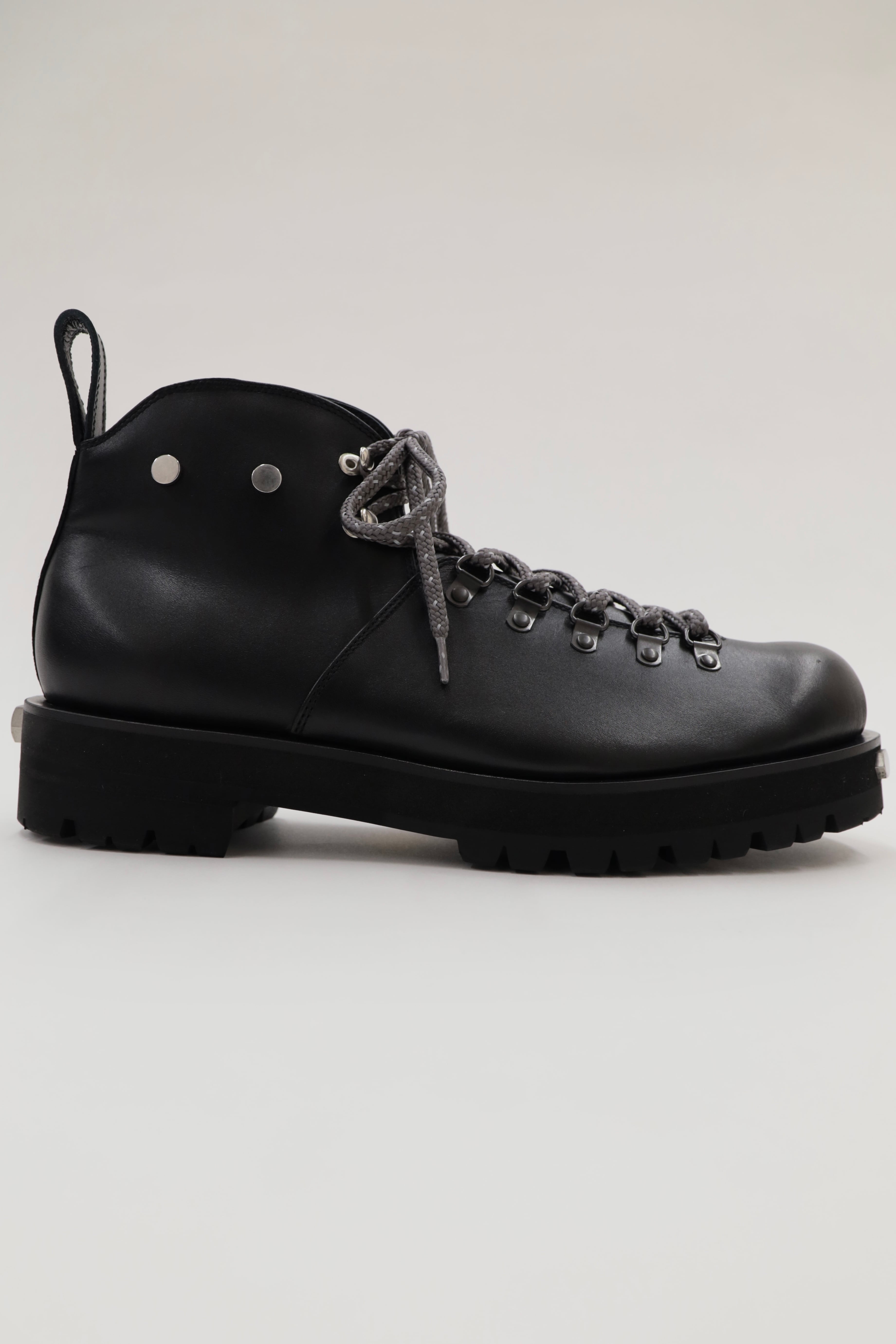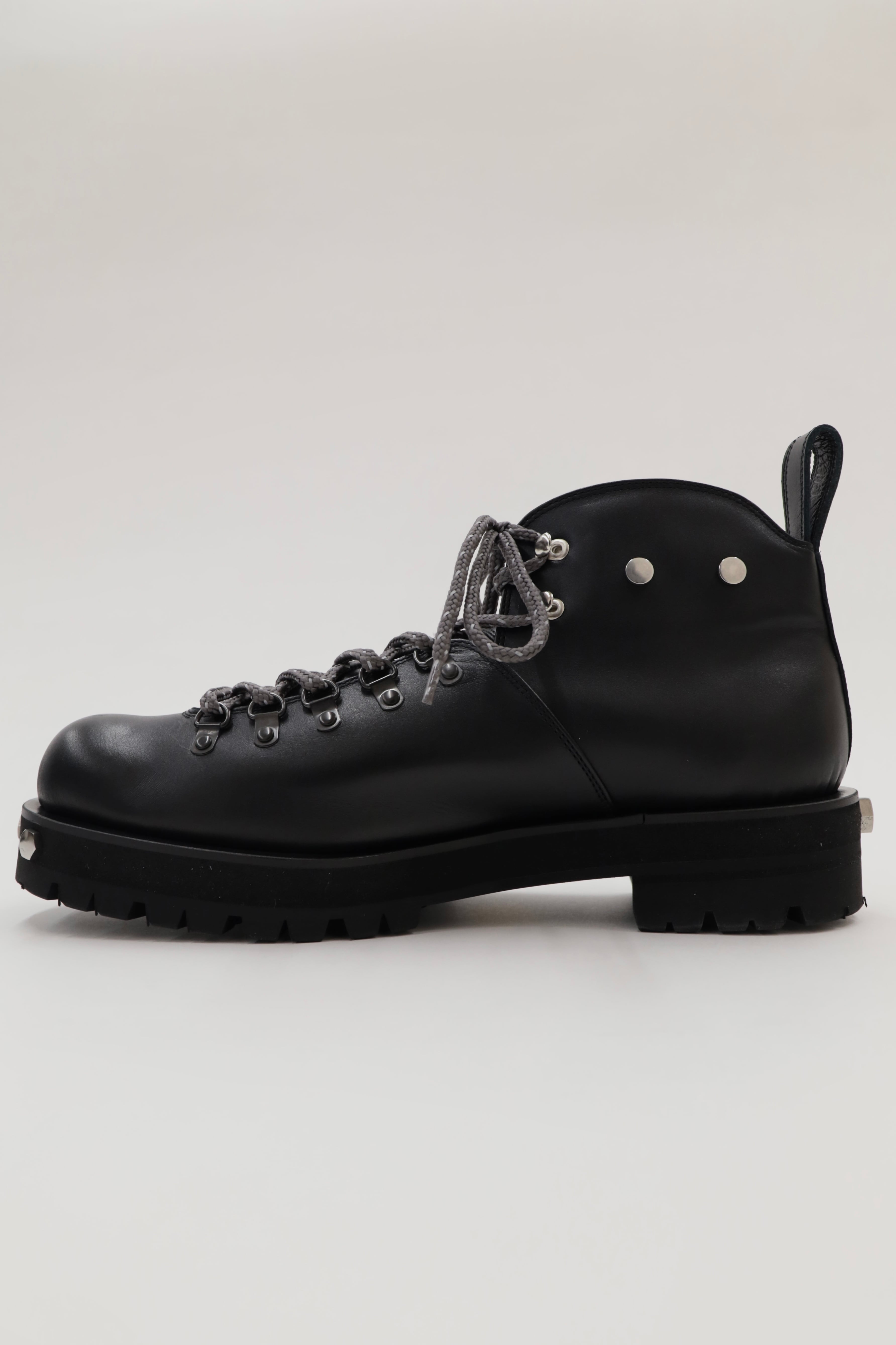 丁寧に研磨した六角ボルトを打ち込んだビブラムソールのトレッキングブーツ。